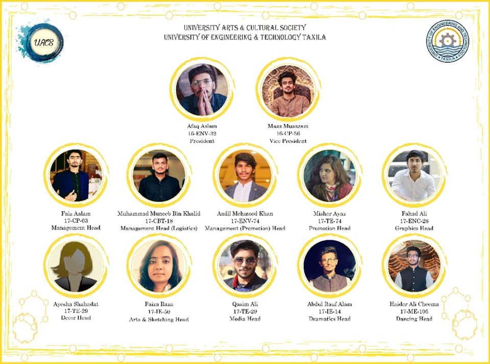 UACS ( University’s Art & Cultural Society ) This Society is about Music,Singing, Drama, Video-Graphy,Sketching, Painting, Calligraphy, Short Movies.